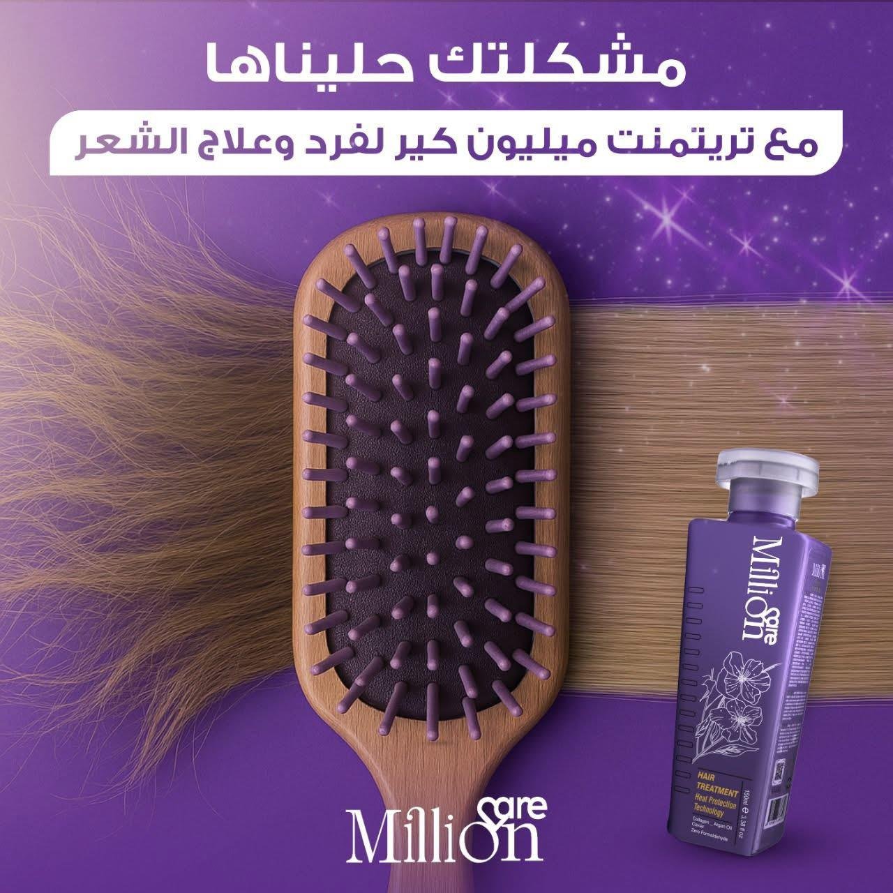 المشكلة الأساسية في الفرد العادي إنه حرارة المكواة بتحرق الشعر من جوه — حتى لو بيتفرد برة. Million Care عنده تقنية Heat Protection بتعمل طبقة عازلة حول الشعرة تحميها أثناء الحرارة وتحبس الرطوبة جوه.